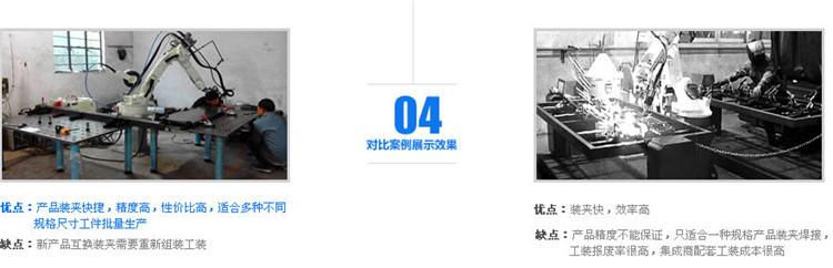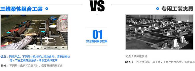 三維柔性焊接工裝簡(jiǎn)化了設(shè)計(jì)專(zhuān)用夾具的工作,大大的縮短了新產(chǎn)品的生產(chǎn)準(zhǔn)備周期,為單位小批量、多品種的生產(chǎn)開(kāi)辟了一條新的途徑。